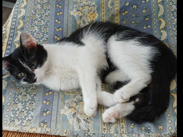C’est avec plaisir que nous vous proposons à l'adoption ce chaton mâle au pelage noir et blanc de six mois nommé Europe. Fusionnel avec son frère Groenland, il serait ravi de vivre dans un même foyer que lui....