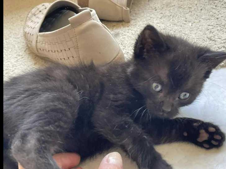 Son nom, c’est Teddy, ce chaton mâle au pelage noir et âgé de deux mois que nous proposons à l'adoption. Il se révèle sociable envers tous.
