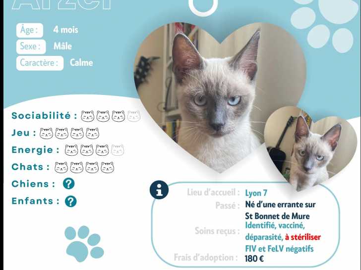 Nous vous proposons à l'adoption Arzel, un adorable chaton au pelage seal point âgé de quatre mois. Il espère trouver une famille aimante qui saura gagner sa confiance.