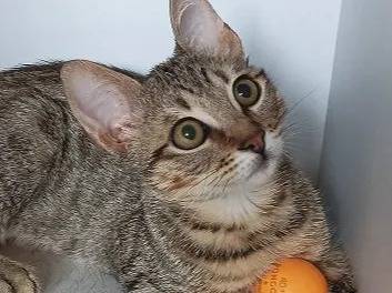 Âgé de huit mois, Arnold est un jeune chat de couleur tigrée que nous mettons disponible à l'adoption. Il recherche une famille aimante qui lui offrira une belle vie.