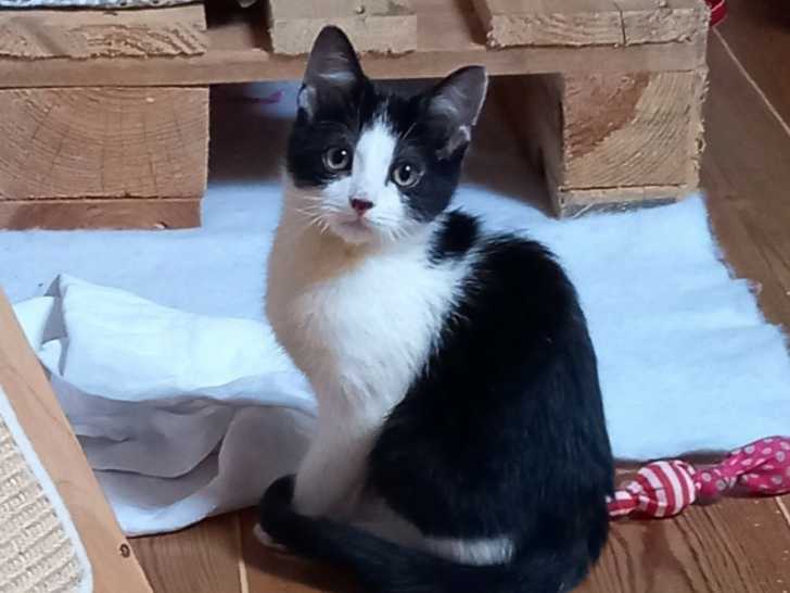 Notre refuge situé dans le Pas-de-Calais (62) vous propose un adorable chaton noir et blanc à l'adoption.