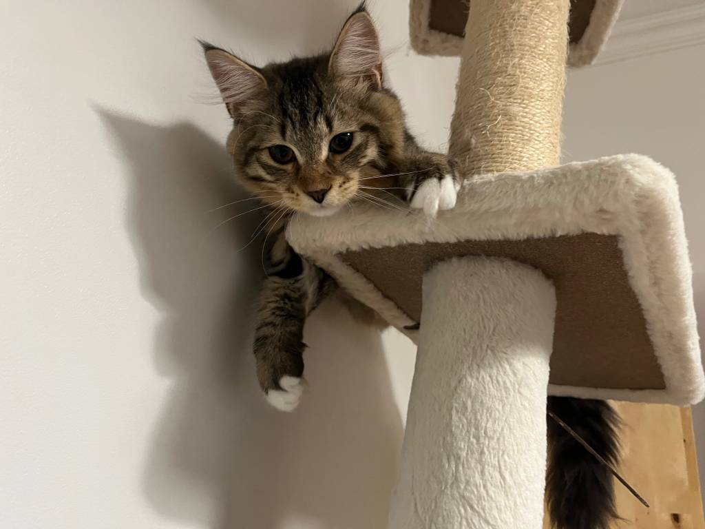 - **Robe :** Magnifique fourrure douce et dense, couleur *[gris blanc roux tabby]*