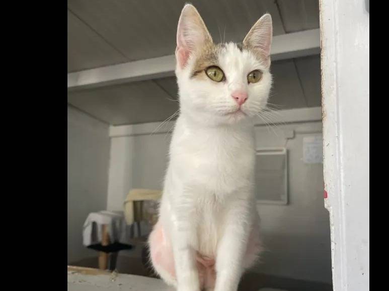 Nous mettons disponible à l'adoption ce chaton femelle au pelage tigré blanc de dix mois nommé Kitty. Elle s’entend bien avec ses congénères ainsi qu’avec les enfants.