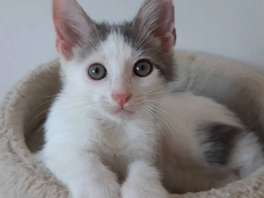 Notre association vous propose à l'adoption Alby, une chatonne grise et blanche âgée de cinq mois. Facile à vivre, elle recherche une famille aimante et ayant déjà un chat pour une vie épanouie.