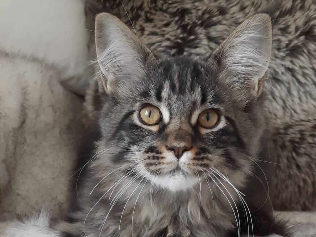 Anabelle est une chatonne Maine Coon. Elle sera disponible pour octobre 2025.