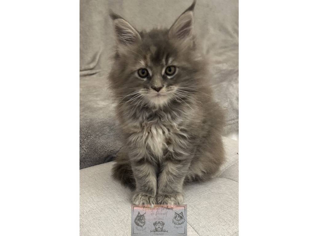 L’élevage de la Forêt de Puivert est heureux de vous présenter une magnifique petite Maine Coon blue tortie blotched tabby : Aphrodite. Elle est née le 27 décembre 2025.