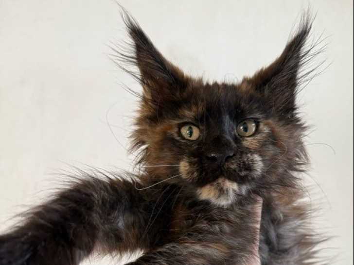 Nous proposons à la réservation un chaton femelle Maine Coon inscrite au Livre Officiel des Origines Félines (LOOF), née le 12 décembre 2024, issue d’une lignée prestigieuse. Son père, Grand Union Star (Moldavie), est un grand gabarit de 10 kg au physique musclé. Notre chaton est Black Tortie et évoluera dans un environnement familial.