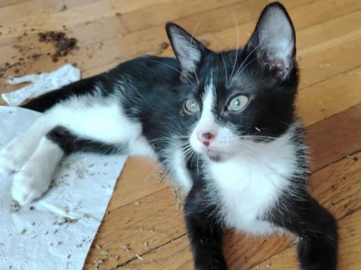 C’est avec plaisir que nous vous proposons à l'adoption ce chaton mâle au pelage noir et blanc de six mois nommé Europe. Fusionnel avec son frère Groenland, il serait ravi de vivre dans un même foyer que lui....
