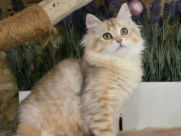 Nous proposons à la réservation une magnifique chatte Sibérienne née le 14 juin 2025, originaire de Pologne. Sa couleur bi-métal rare, alliant black silver et sunshine, lui offre des reflets lumineux uniques pour un prix de 1 990 euros.