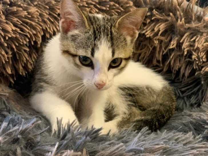 Affectueuse, douce et sociable, Kiara, une chatonne tigrée blanche de deux mois, recherche un foyer chaleureux. Elle a de bonnes ententes avec ses congénères.