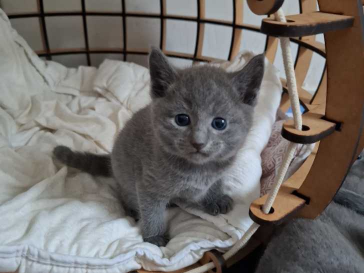 3 chatons Bleu Russe sont disponibles sur 5 (2 mâles et 1 femelle). Ils sont nés le 19 août 2025. Ils ont le poil court. Le papa est Bleu Russe est vient de Russie. La maman est Nébelung. C'est un mariage...