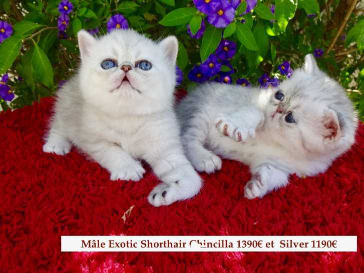 2 Mâles Exotic Shorthair et un Persan prix de 1190€ à 1590€ pour le Magnifique Persan Silver,tous très affectueux vidéo pour preuve sur demande.