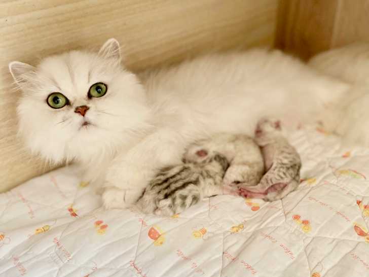 Portée de 3 Mâles (mariage Persan chinchilla et Exotic Shorthair Chinchilla).