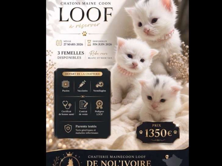 Issus d'une portée de 3 chatons, 2 petits mâles sont encore des cœurs à prendre : - Botté (chaton plus clair de visage) est un adorable petit chaton Maine Coon très joueur et en demande d'attention. C'est un...