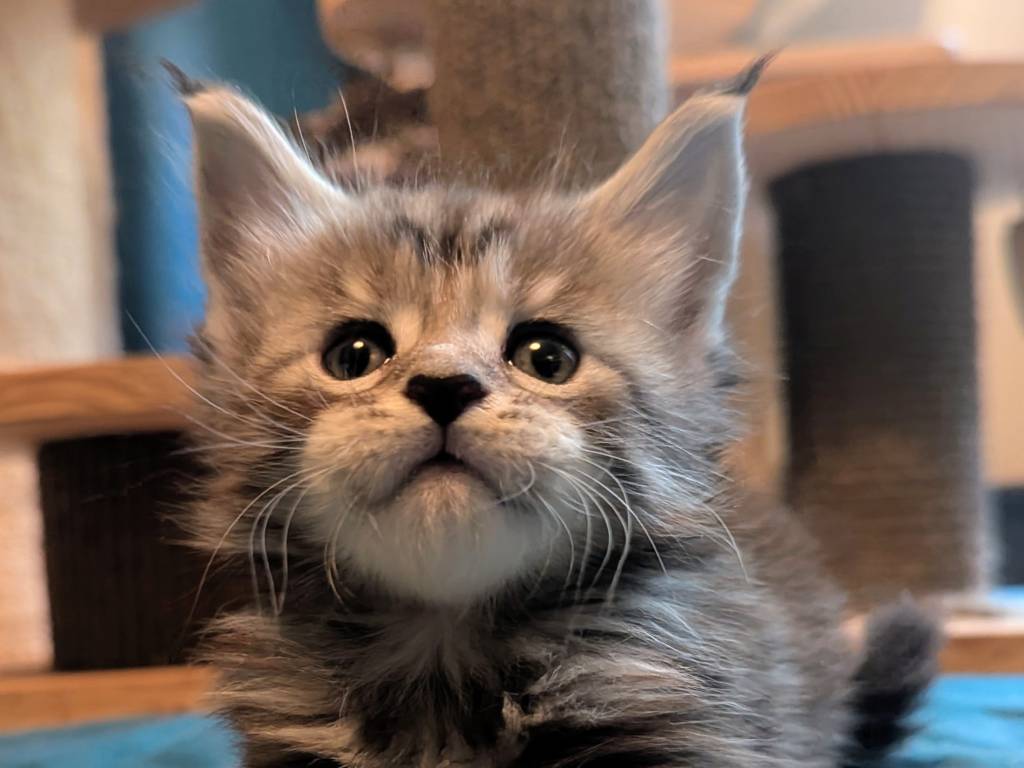 Disponible à la réservation 2 mâles Maine Coon Aspen black smoke, Anton black silver mackerel et 3 femelles Adisson, Avery black smoke, April Black silver mackerel nés le 18 septembre 2025 sur une portée de 7 chatons.