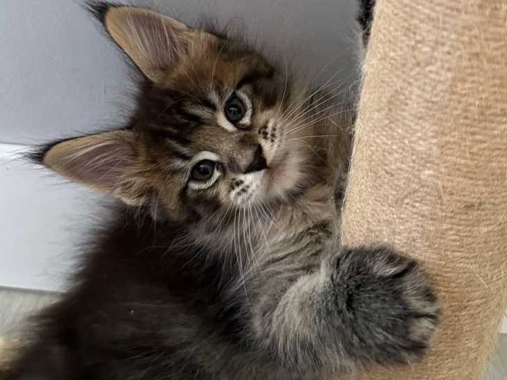 Ambra est une chatonne femelle Maine Coon. Elle appartient à une portée de quatre chatons inscrits au Livre Officiel des Origines Félines (LOOF). Elle se montre vive, joueuse et s’adapte sans difficulté aux...