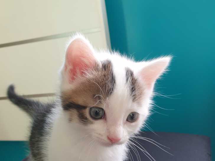 Nous donnons 2 chatons mâles : 1 noir et blanc et 1 rayé blanc. Ils sont nés le 15 avril 2025. Ils sont propres et mangent tout seuls. Ils sont très joueurs.