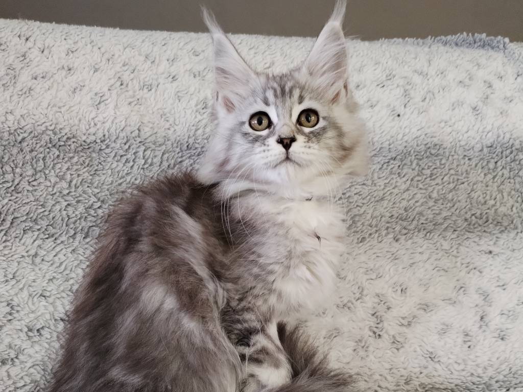 Je vous propose 2 mâles et 3 femelles Maine Coon LOOF sur une portée de 8 chatons. Ils sont nés le 26 juin 2025.