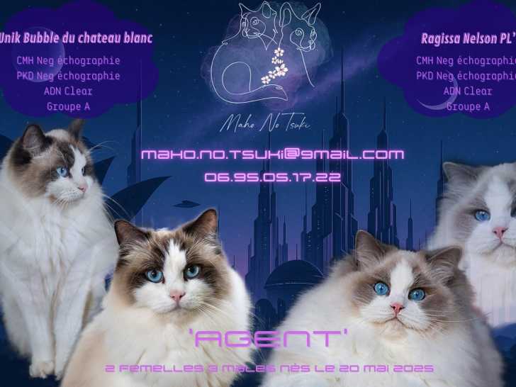 Nous vous proposons de magnifiques chatons Ragdolls inscrits au Livre Officiel des Origines Félines (LOOF), nés fin mars 2025 et prêts à partir depuis mi-juin 2025. Nos reproducteurs sont testés pour...