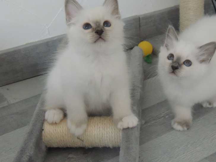 Sur une portée de trois chatons Sacrés de Birmanie nés le 31 juillet 2025, tous sont disponibles à la vente. Une femelle blue tabby, un mâle lilac tabby et une femelle lilac tabby sont disponibles à partir de...