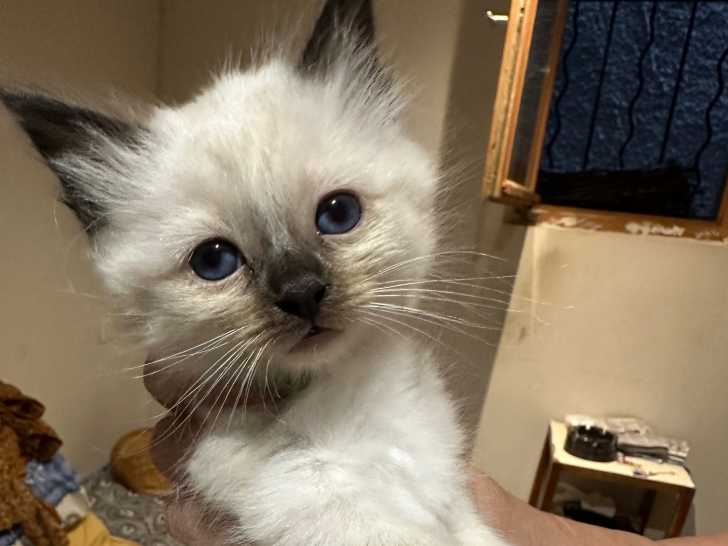 Pour 1400 euros, adoptez Amy, une magnifique chatonne Sacré de Birmanie née en août 2025. Elle arbore une robe colourpoint parfaite avec des yeux bleus lagon et des gants impeccables. Sociable et...