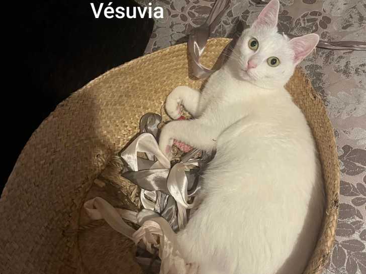 Nous sommes enchantés de vous proposer à l'adoption Vésuvia, une jeune chatte de couleur blanche et âgée de deux ans. Elle espère une famille avec un jardin et sans d'autres animaux domestiques pour une vie...