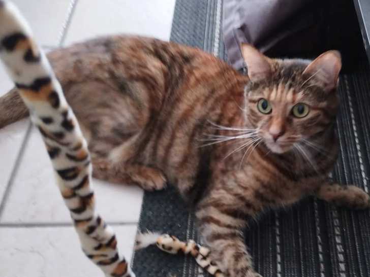 Kakao est une chatte au pelage écaille de tortue et âgée de trois ans que nous vous proposons à l'adoption. Elle s’entend bien avec les enfants, mais préfère être le seul chat de son futur foyer.