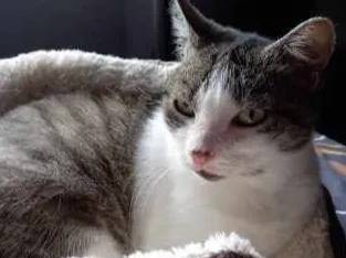 Nous proposons à l'adoption Voice, une chatte grise et blanche âgée de huit ans. Elle est affectueuse et espère trouver une famille bienveillante, idéalement sans chats pour une vie heureuse.