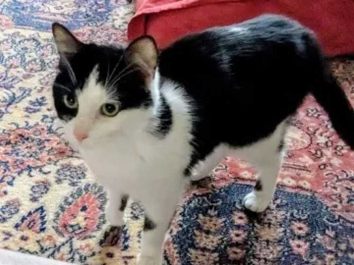 Notre refuge est ravi de vous proposer à l'adoption cette jeune chatte noire et blanche d'un an nommée Gina. Cette dernière est affectueuse et apprécie la compagnie de l’humain.
