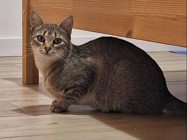 Nous vous proposons à l'adoption cette chatte de deux ans au pelage tigrée nommée Halva. Celle-ci, craintive, a besoin d'un foyer aimant, calme, sans enfants et qui dispose déjà d'un chat.