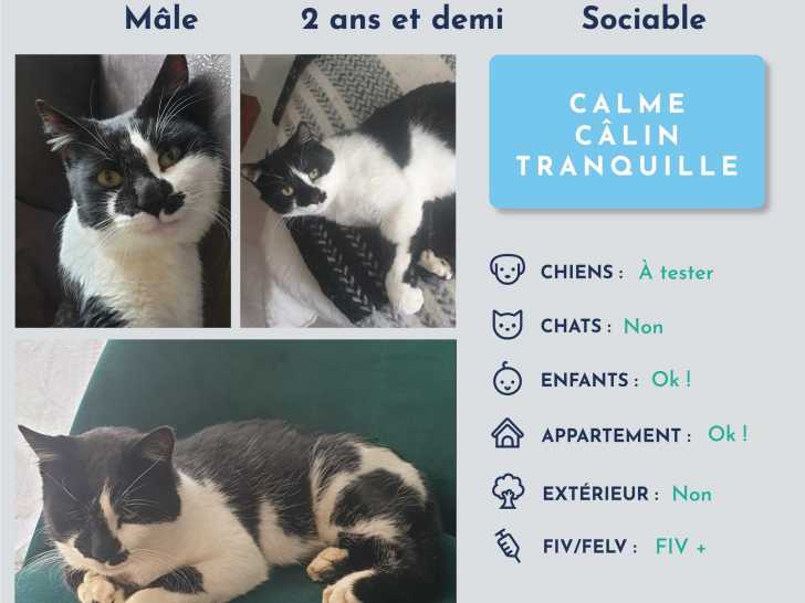 Nous vous proposons d’adopter Uchoumi, un chat de deux ans qui est en quête d’un foyer aimant. Atteint du virus de l'immunodéficience féline, il devra être le seul animal de sa future famille.