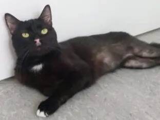 Découvrez Booba, un chat noir de quatre ans que nous vous proposons à l’adoption. Tranquille et chaleureux, il est en quête d’une famille aimante et confortable pour la vie.