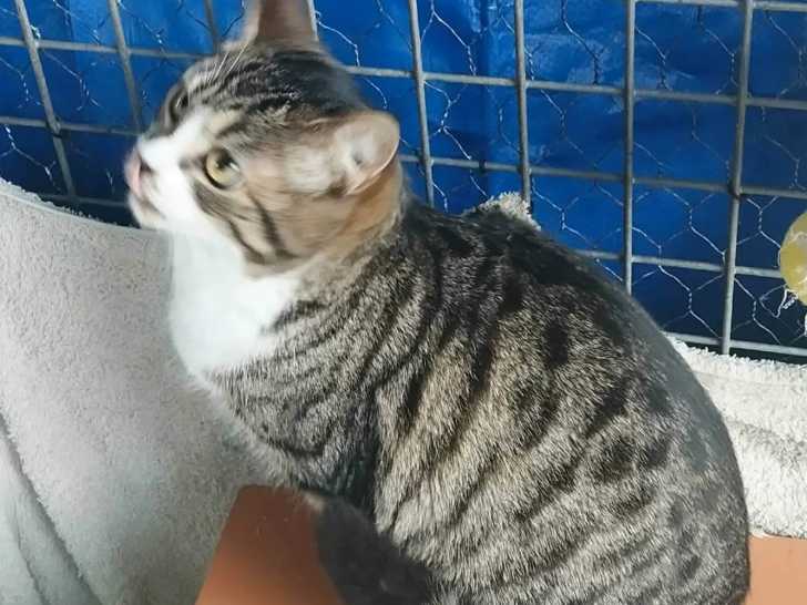 Nous proposons à l’adoption Ange, un chaton femelle au pelage tigré blanc âgé de huit mois. Autrefois réservée, elle est devenue sociable au fil du temps grâce à l’attention reçue. Elle s’épanouira dans un environnement calme et affectueux.