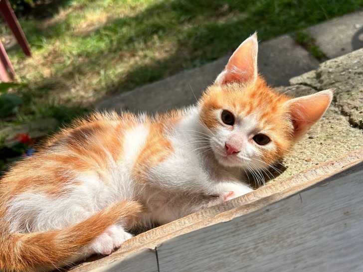 Nous sommes ravis de vous proposer à l’adoption ce chaton mâle roux et blanc âgé de quatre mois prénommé Voyou. Sociable avec ses congénères, il recherche une famille attentionnée pour une vie épanouissante.