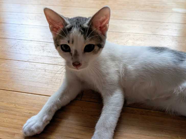 Il s’appelle Avo, ce chaton mâle au pelage gris et blanc de quatre mois que nous avons le plaisir de vous proposer à l'adoption. Il se révèle sociable envers tout le monde.