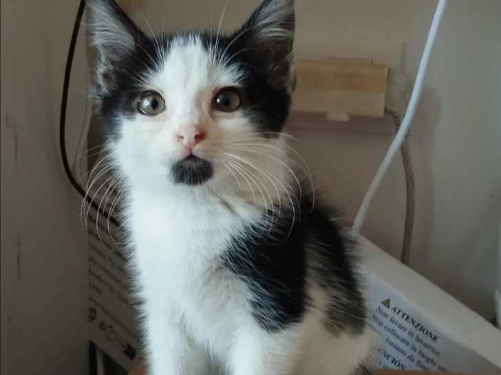 Nous avons le plaisir de vous proposer à l'adoption ce chaton mâle au pelage noir et blanc de quatre mois nommé Mini Cooper. Il recherche une famille aimante et ayant déjà un chat pour une vie heureuse.