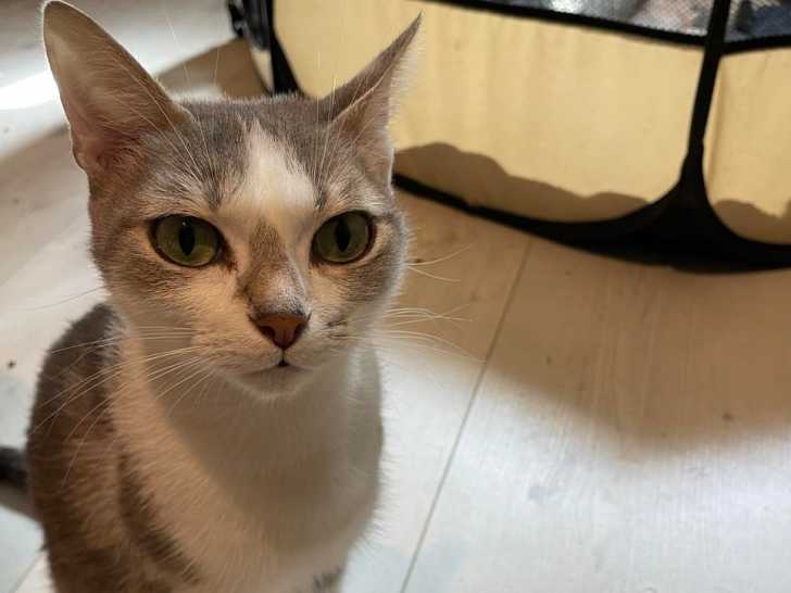 Elle est âgée de deux ans, cette chatte gris et blanc nommée Gribouille que nous mettons disponible à l'adoption. Elle est sociable avec les enfants, mais pas avec d’autres animaux domestiques.