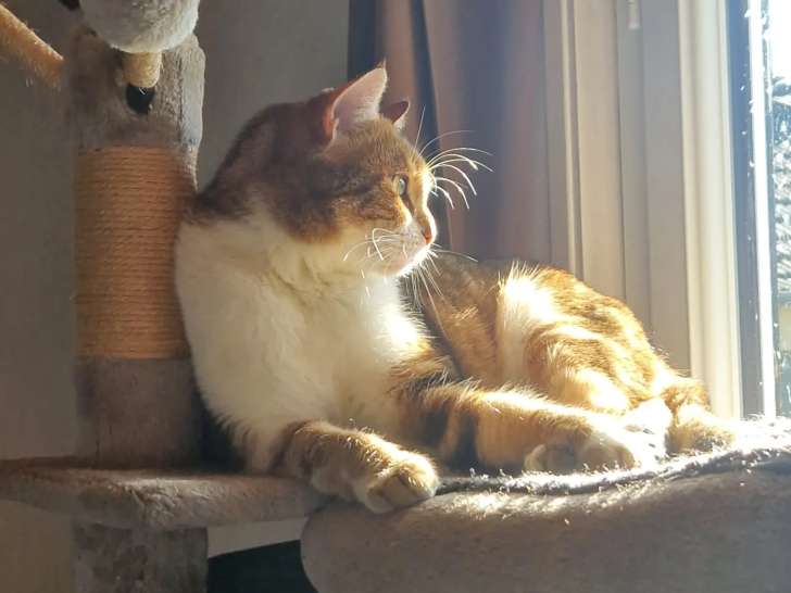 Nous proposons à l’adoption Jaimie, une chatte au pelage roux et blanc âgée de cinq ans, attentive et en quête d’affection. Elle s’épanouira dans un foyer doux et confortable, où elle pourra profiter d’attention et de tranquillité.