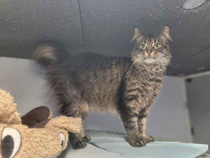 C’est avec plaisir que nous vous proposons Léonie, une chatte tigrée âgée d’un an, ultra sociable et douce, qui aime jouer et sauter. Affectueuse, elle a besoin de présence humaine et pourra s’entendre avec...
