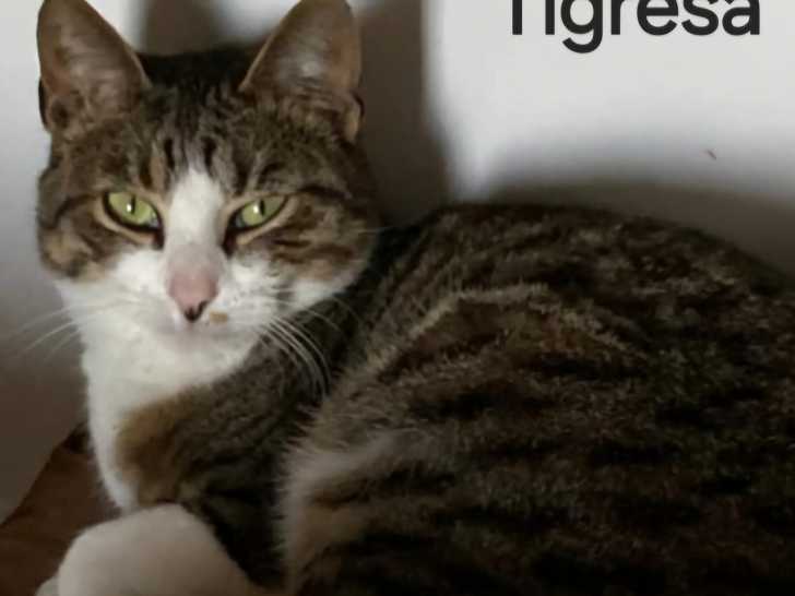 Tigresa est son nom, cette jeune chatte de couleur tigrée et âgée d'un an que nous vous proposons à l'adoption. Elle se révèle sociable malgré sa timidité.