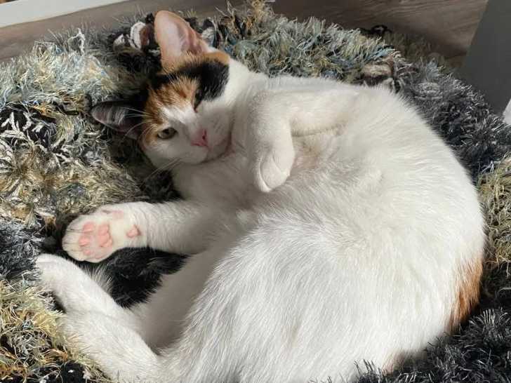 Nous vous proposons à l'adoption Zoé, une chatte au pelage tricolore âgée d'un an. Gentille, propre et facile à vivre, elle aime interagir avec les humains et espère trouver une famille sans enfants, qui pourra l’accueillir avec sa sœur Lou.