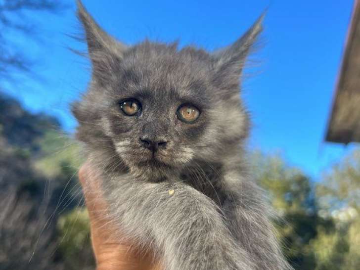 Ankaa, la dernière femelle Maine Coon de sa portée, est disponible à la vente. Cette petite aux couleurs rares de blue smoke et blanc est un vrai bijou, inscrite au Livre Officiel des Origines Félines (LOOF).