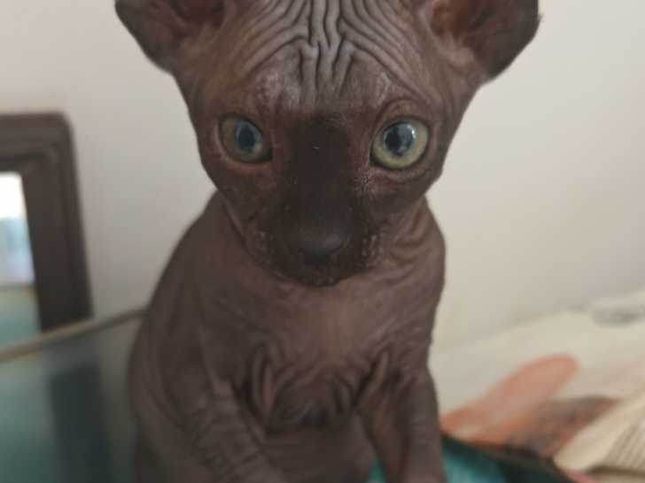 Suite à la réduction de mon élevage, je propose à l'adoption une très belle femelle Sphynx noire, âgée de 2 ans et demi. Cette chatte très câline, expressive et proche de l'humain est à jour de ses vaccins e...