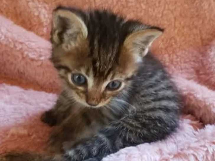 Nous mettons disponible à l'adoption ce chaton femelle de couleur tigrée et âgé d'un mois nommé Arwen. Celle-ci est câline et proche de l'humain.