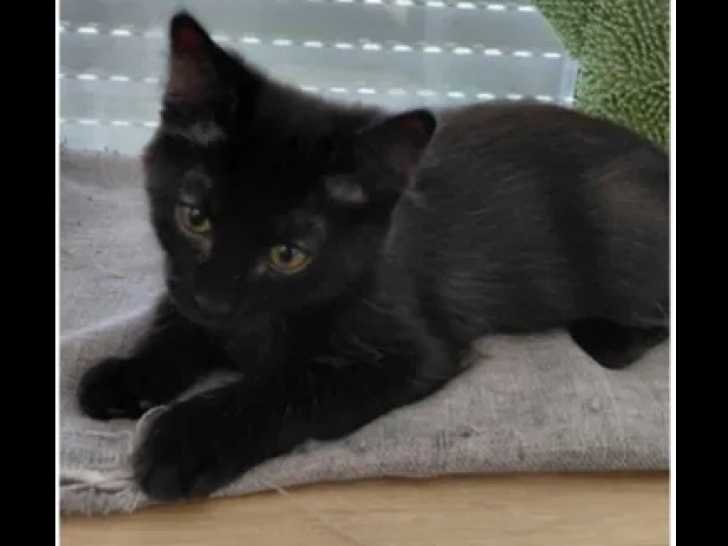 Nous mettons disponible à l'adoption ce chaton mâle au pelage noir de trois mois appelé Starscream. Il se révèle sociable malgré sa timidité.