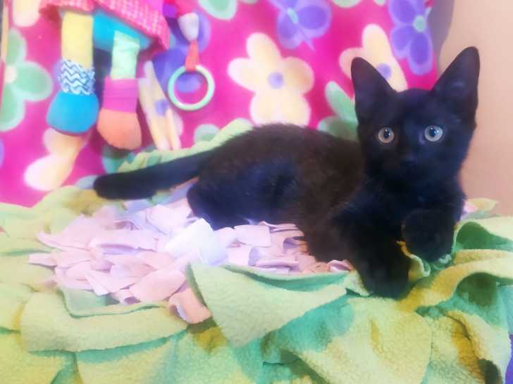 Son nom, c’est Nour, cette chatonne de couleur noire et âgée de quatre mois que notre association vous proposer d’adopter.