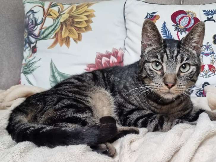 De couleur tigrée grise, Gulli est un chat âgé de cinq ans que nous sommes heureux de vous proposer à l'adoption. Il est facile à vivre, mais atteint de la leucose.