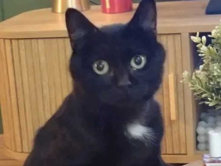 Nous sommes heureux de vous proposer à l'adoption ce chat noir avec marque blanche de six ans nommé Buster. Ce dernier, non compatible avec les enfants, aura besoin de temps et de douceur pour donner sa confiance.