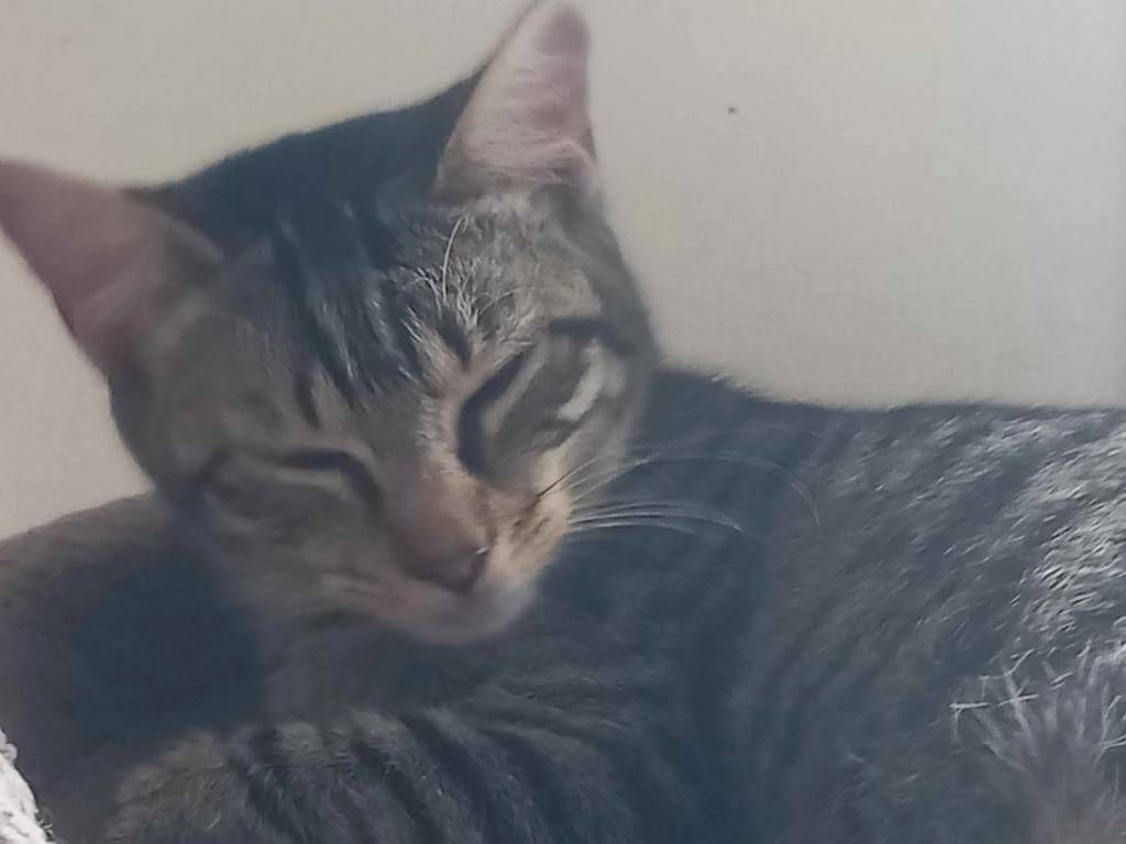 Nous mettons disponible à l'adoption cette jeune chatte au pelage tigré gris de huit mois nommée Arsouille. Elle attend un foyer doux et aimant pour la vie.