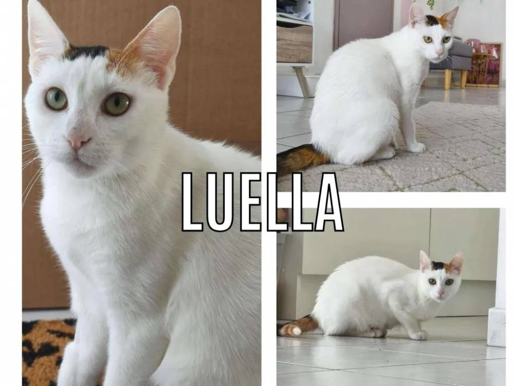 Nous mettons disponible à l’adoption cette chatte à la fourrure tricolore de deux ans nommée Luella. Elle s’entend bien avec ses congénères et peut cohabiter des enfants calmes.